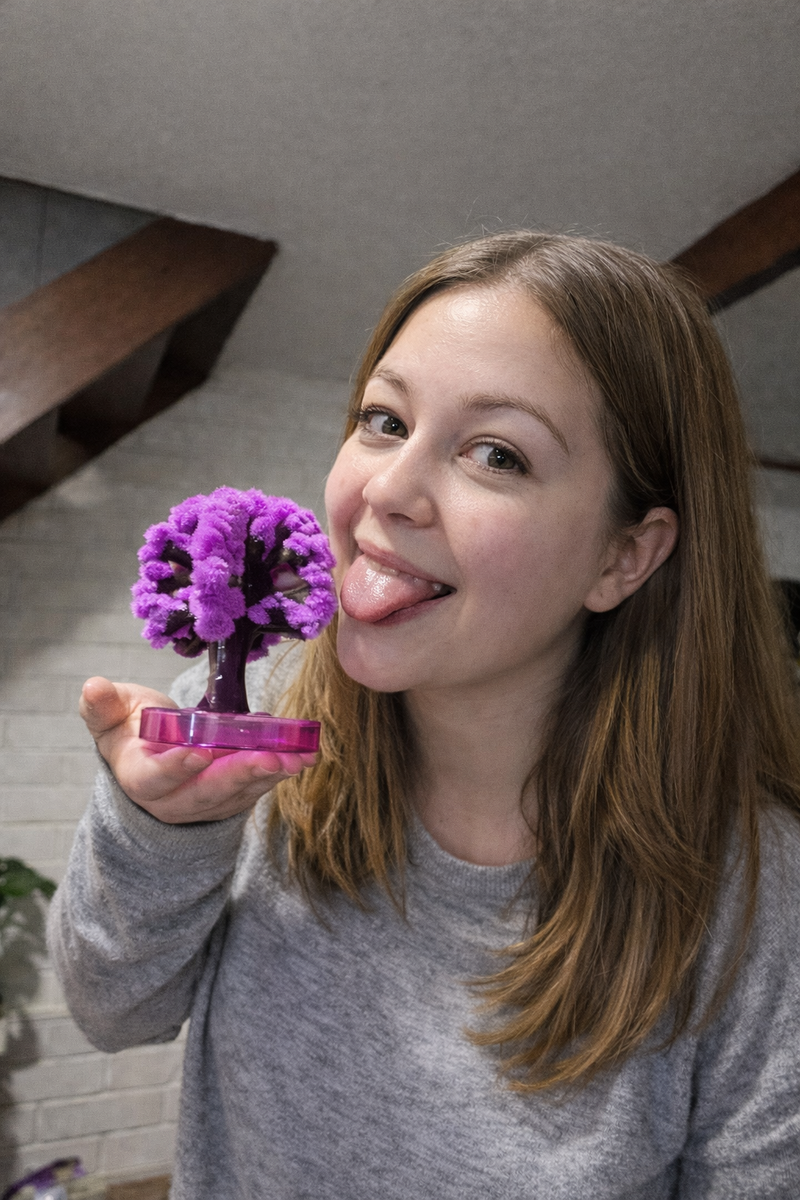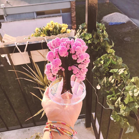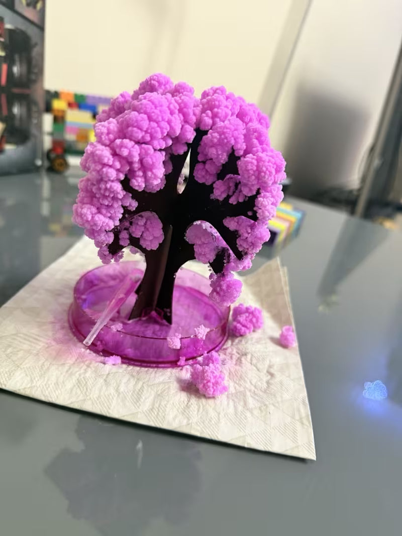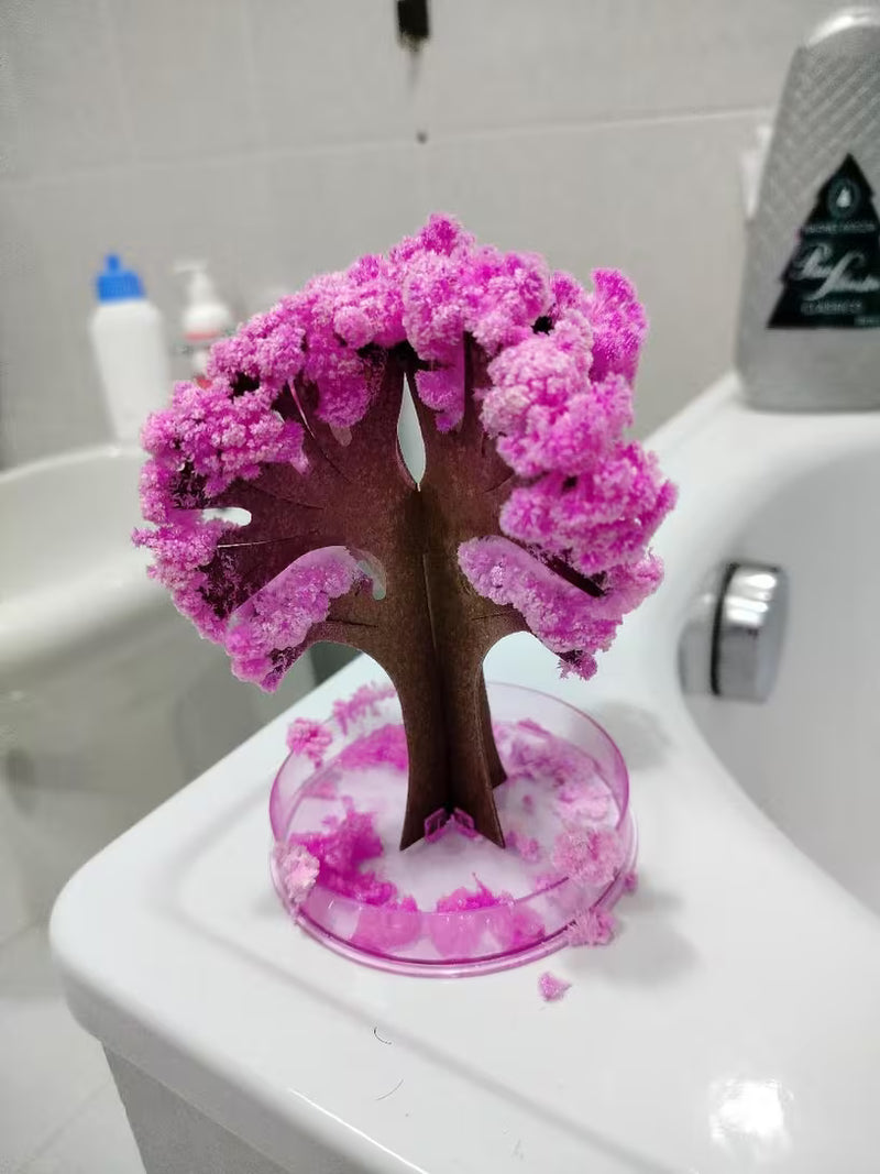 The tree begins blooming within a few hours after you pour the solution.